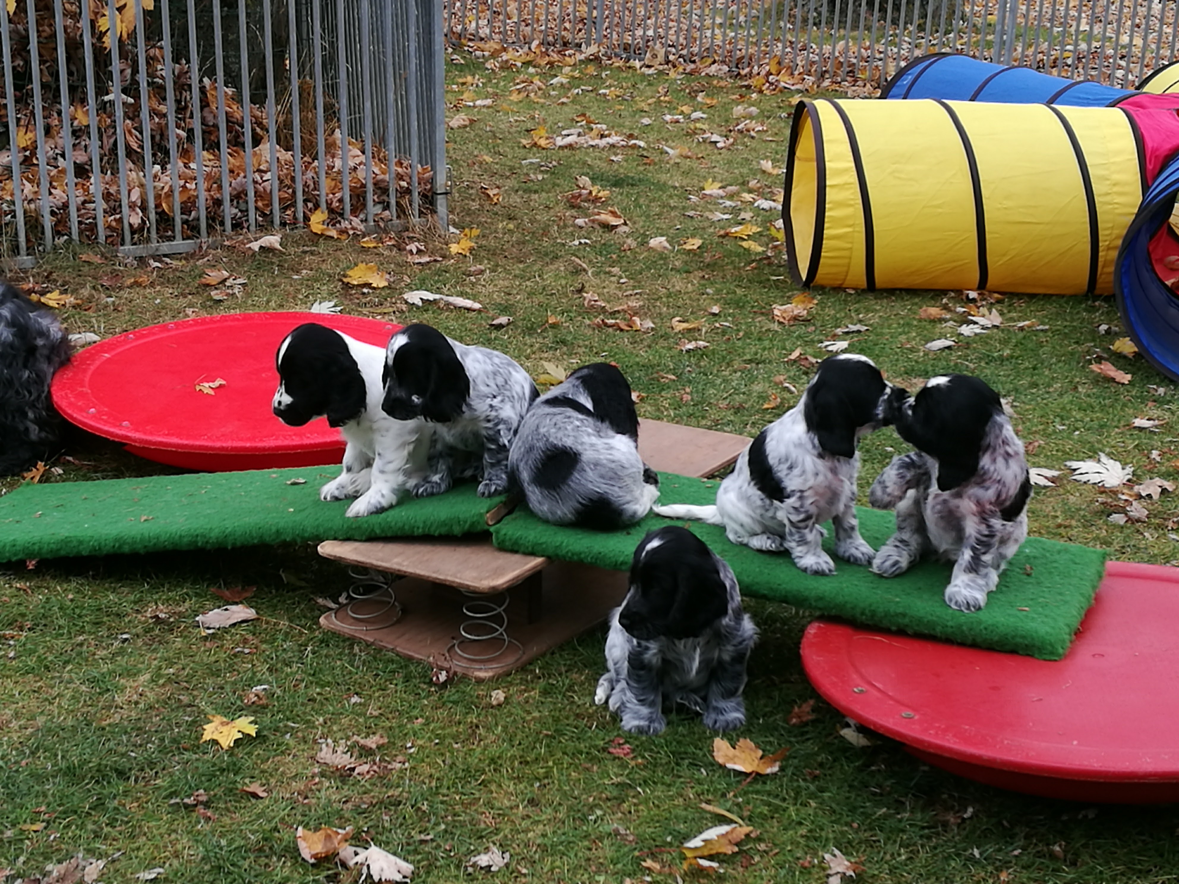 Unsere English Cocker Spaniel Hündin Jessy hat am 05.03.2023 sechs Welpen zur Welt gebracht. Drei Rüden und drei Hündinnen.